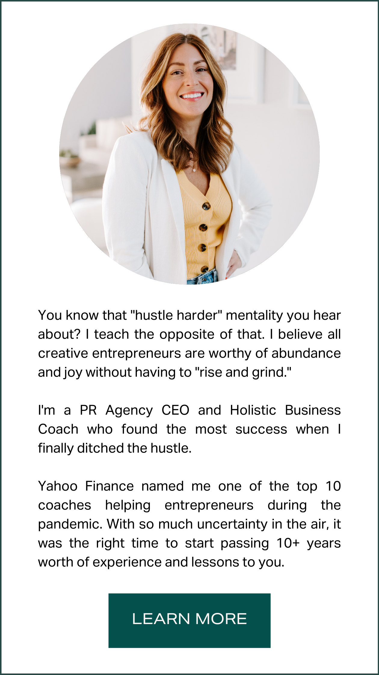 For instance, if you’re a money coach who helps moms achieve financial freedom, chances are your clients want to know if you’ve been in their shoes.
